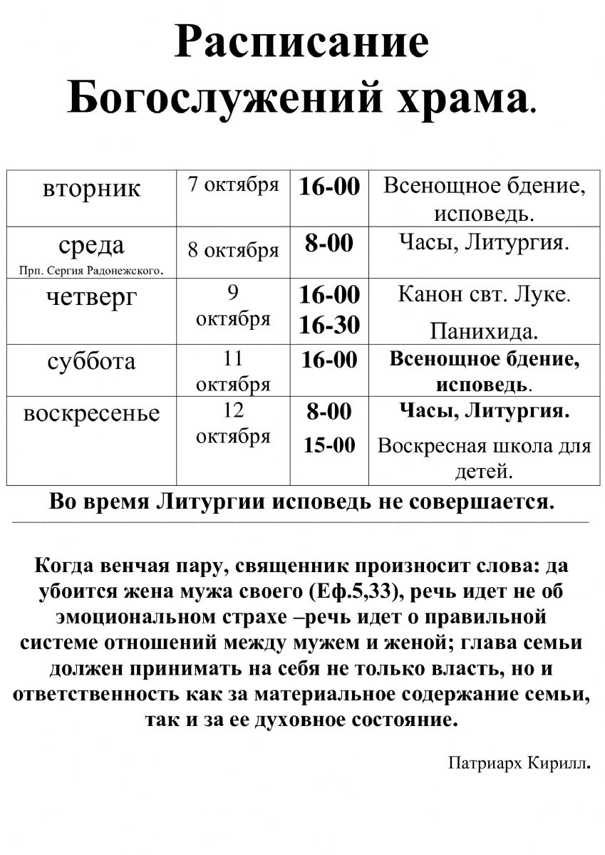 Расписание богослужений